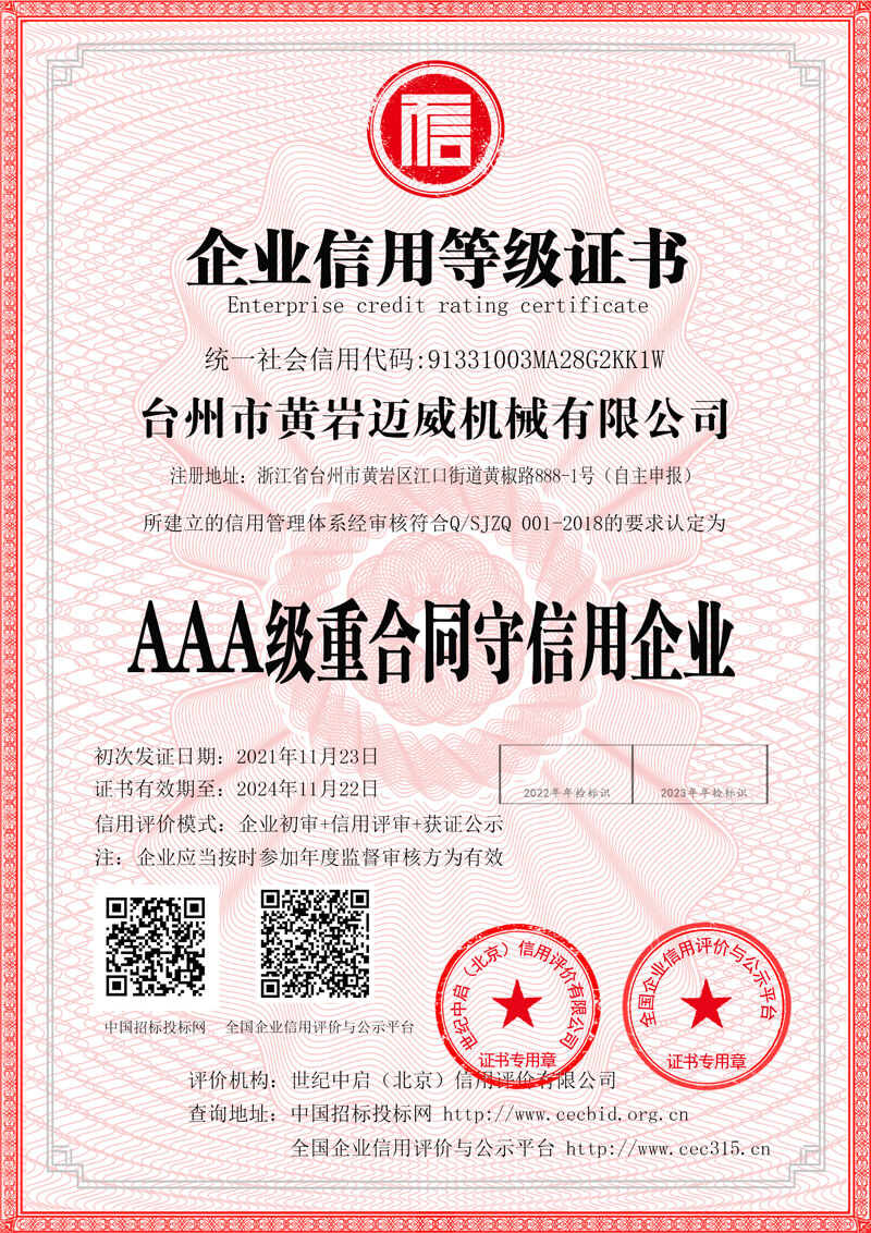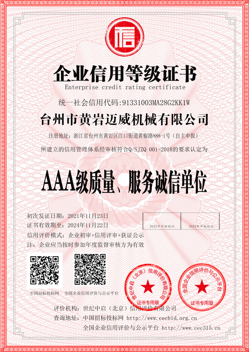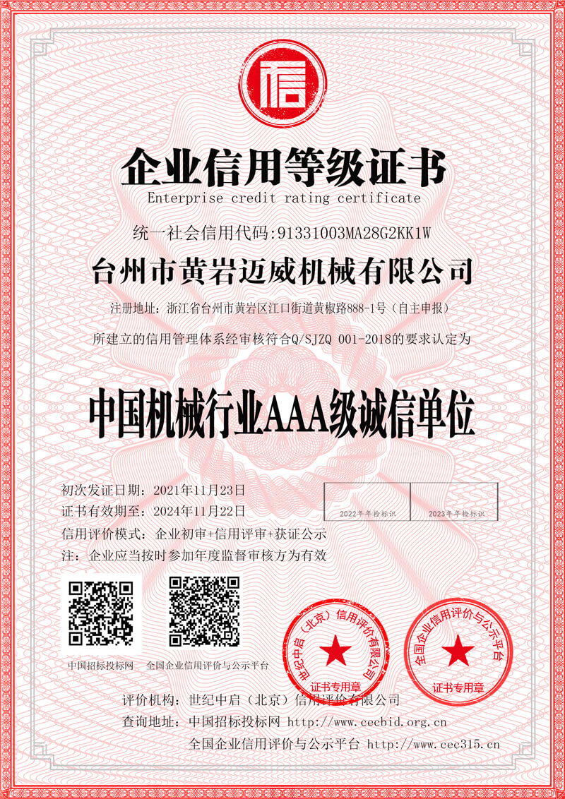 臺州市黃巖邁威機械有限公司座落于東海之濱,素有“模具王國,吹瓶機制造基地”美稱的浙江黃巖。 臺州市黃巖邁威機械有限公司融合國內(nèi)外的先進技術(shù)和理念,專業(yè)從事設(shè)計、生產(chǎn)和銷售。生產(chǎn)的二十多種規(guī)格型號的全自動吹瓶機、半自動吹瓶機,適用于生產(chǎn)以PET、PP、PE為原料,從5毫升至40升的各類塑料瓶制品,如礦泉水瓶、飲料瓶、化妝瓶、奶瓶、花生油瓶、PET五加侖水桶、太空杯以及燈罩。優(yōu)良的品質(zhì)、穩(wěn)定的性能、優(yōu)越的性價比,使公司產(chǎn)品不僅暢銷國內(nèi)市場,并出口到東南亞、中東、非洲以及歐美等國家和地區(qū),深受客戶的好評和信賴。 “誠實守信,真誠服務(wù)”是我們的經(jīng)營作風(fēng),“不斷創(chuàng)新,銳意進取”是我們的經(jīng)營信念。在激烈的市場競爭中,我們以優(yōu)良的品質(zhì)和先進的科技取勝,在服務(wù)客戶的同時不斷壯大自己,在不忘老朋友的同時,更期待結(jié)識新朋友,我們愿用自己的技術(shù)和服務(wù)幫助我們的朋友。 熱烈歡迎國內(nèi)外的朋友來公司洽談合作。